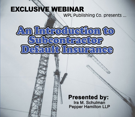 |   | For many years, owners and general contractors have looked for cost-effective alternatives to the traditional payment/performance surety bonds, three-way agreements in which a surety guarantees to one party the performance and/or payment of another party. A new subcontractor default insurance (SDI) product, issued by Zurich Insurance under the name of Subguard, has emerged as a viable alternative that protects an owner and general contractor from the consequences of a defaulting subcontractor while eliminating many of the delays and other problems associated with traditional surety bonds. This interactive program will provide you with a firm understanding of subcontractor default insurance, including coverage parameters, exclusions, and other important information. | Price: $199.00 FREE TO MEMBERS!